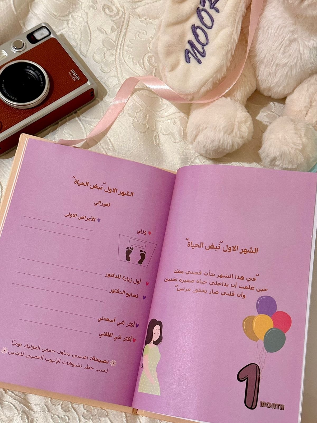 مساحة لكِ وحدكِ: المفكرة مُصممة لتحتوي مشاعركِ وأفكاركِ وتفاصيلكِ الصغيرة، وتمنحكِ إحساس الاحتواء والدفء خلال رحلة الحمل المليئة بالتحولات.سجل نبضات البداية: تبدأ معكِ منذ اللحظة التي عرفتِ فيها الخبر، موثقةً أول مشاعر، أول زيارة طبيب، وحتى أول نبضة سمعتيها بوضوح.تنظيم شهري متعمق: تشتمل على صفحات مُصممة خصيصاً لكل شهر (من الأول حتى التاسع)، لتسجيل الأعراض الجسدية، الملاحظات الطبية، وأحلامكِ الليلية.مرافقة ما بعد اللقاء: لا تنتهي المفكرة بالولادة، بل تتضمن مساحة خاصة لتوثيق تفاصيل يوم اللقاء الكبير ، وأول صورة، وأعمق المشاعر التي تلت الولادة.تصميم يُلامس الروح: تأتي بتصميم هادئ ومريح، يركز على التجربة والشعور أكثر من الجداول الصارمة، مما يجعل الكتابة متعة وليست واجباً.هوية عربية أصيلة: المفكرة هي تصميم سعودي فريد، كُتب بعناية فائقة ليلائم ثقافتنا ويتحدث بلسان قلب الأم العربية.